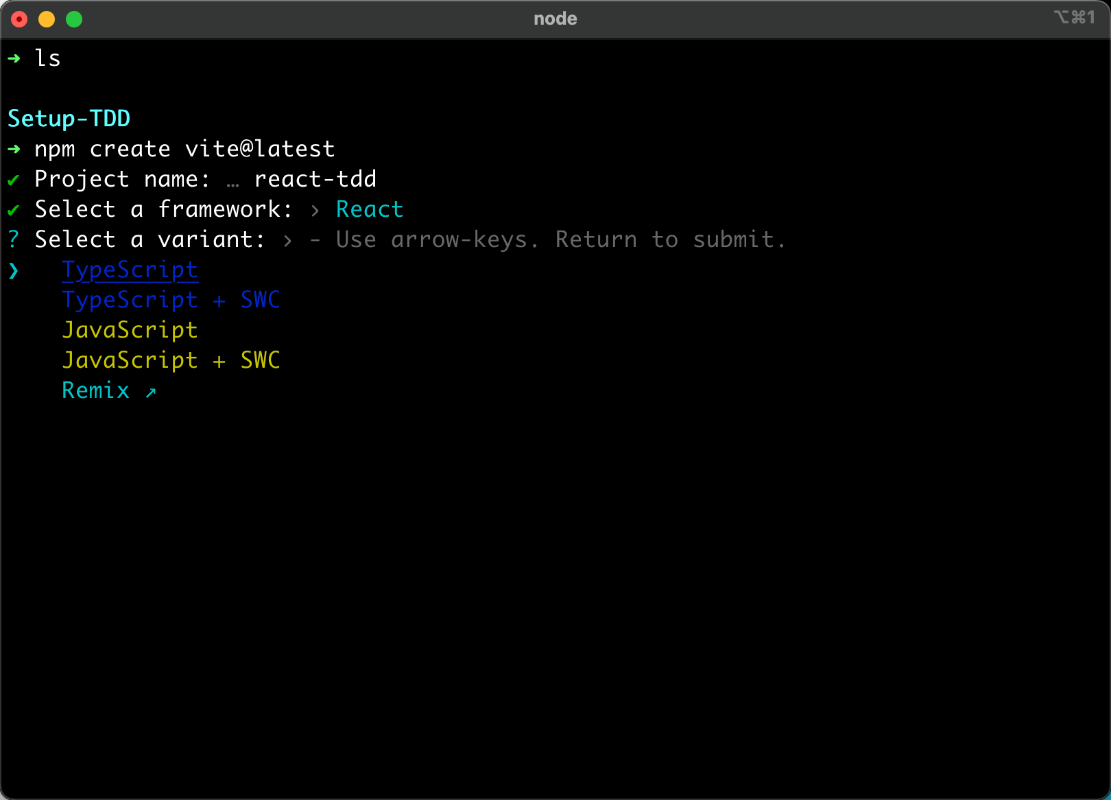 Nästa fråga är vilket språk som ska användas, välj TypeScript och tryck Enter.