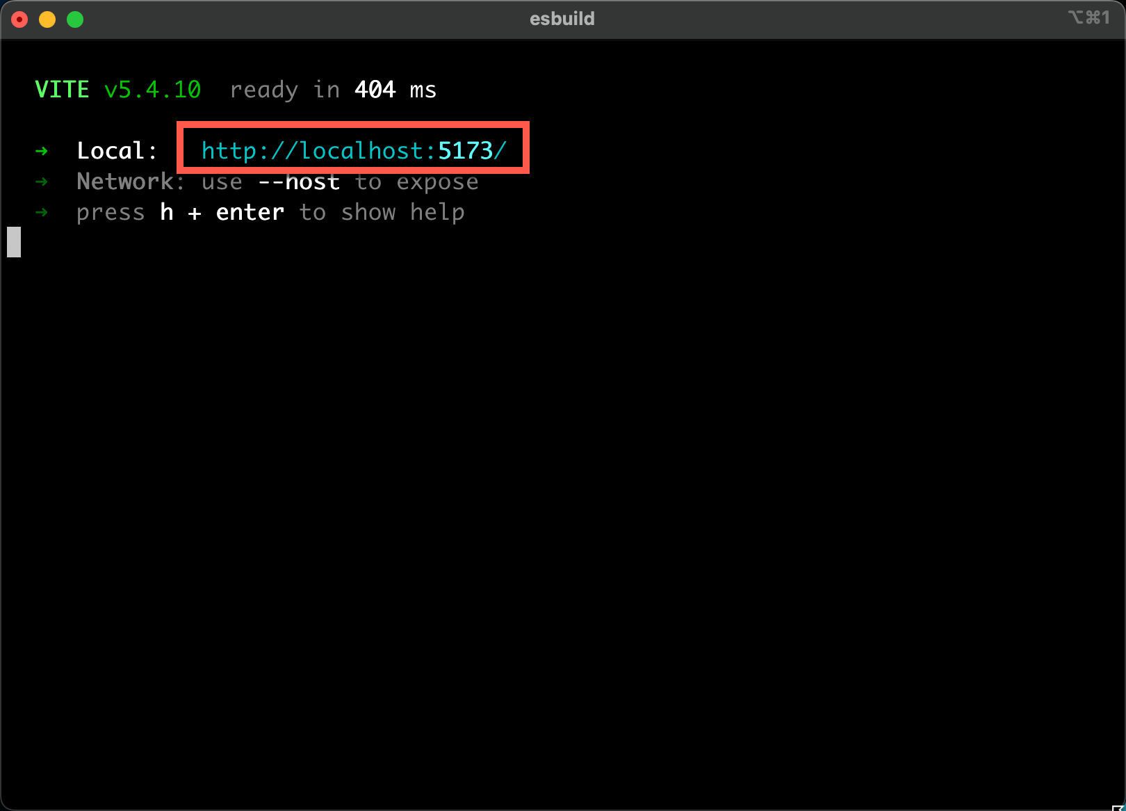 När vi kör npm run dev så startar applikation och vi kan se i terminalfönstret information om vilken url som applikationen använder.