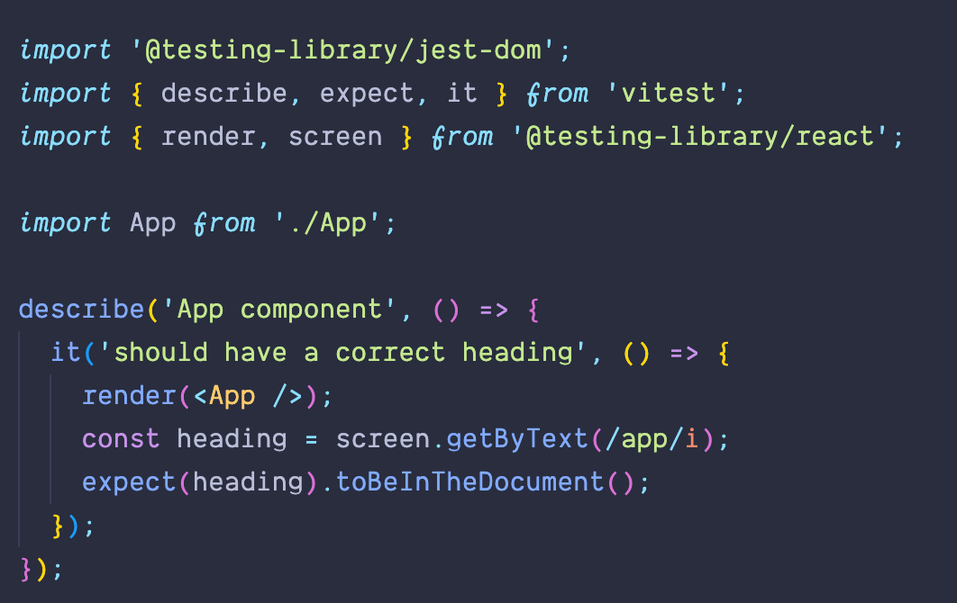- npm i -D @testing-library/react @testing-library/dom @types/react @types/react-dom